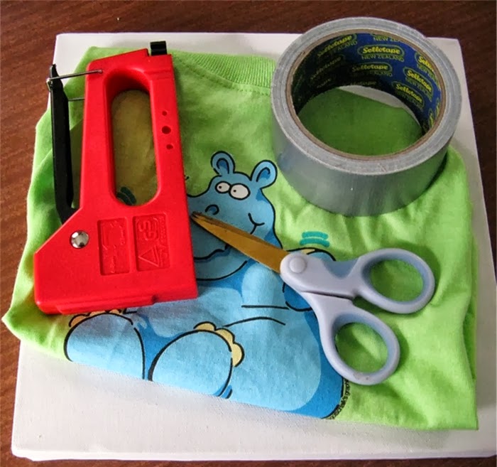 Para hacer este cuadro solo necesitáis un lienzo, la camiseta , tijeras , grapadora y cinta americana: