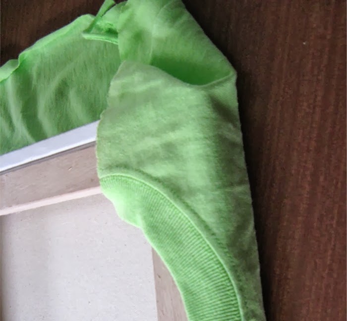 2- Una vez cortada la camiseta empezar a colocarla en el lienzo , primero probar como queda , que quede lo mas centrada posible ( pensar que en según que camisetas el dibujo esta muy cerca del cuello y esto hará que no quede del todo centrada )