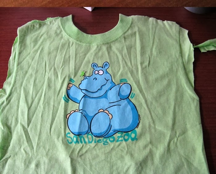 1- Tenéis que recortar la camiseta , solo dejar la parte delantera donde esta el dibujo , cortar también las mangas.