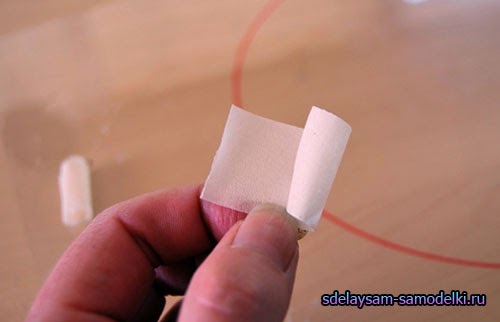 La cinta se tiene que enrollar de manera que un lado queda mas ancho que el otro y el adhesivo de la cinta tiene que quedar por fuera.