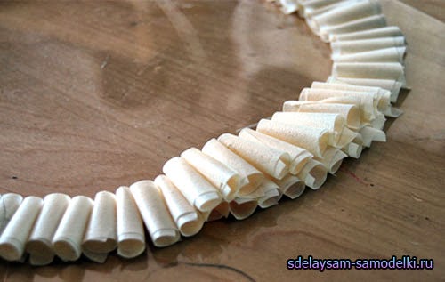 Pegar cada tubito de cinta encima de la marca que has hecho anteriormente siempre con cuidado que la parte ancha de tubito tiene que quedar en la parte externa de la pantalla. Los tubitos de cinta tienen que quedar pegados unos a otros.