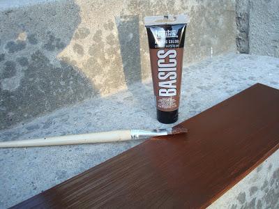 Y pasamos a pintar con la pintura acrílica.Si quieres que se vea la veta de la madera sólo tenemos que añadirle agua.