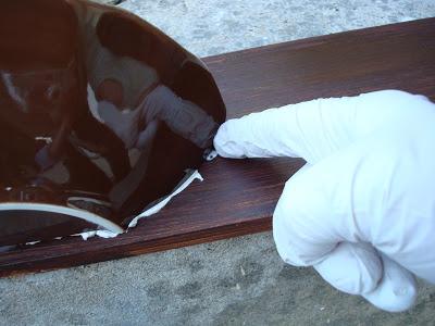 Cuando este seco damos cera incolora. Y lijamos con lana de acero de 000 para pulir y sacoar brillo.