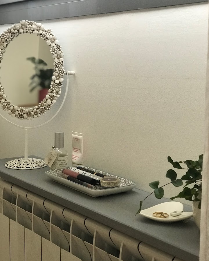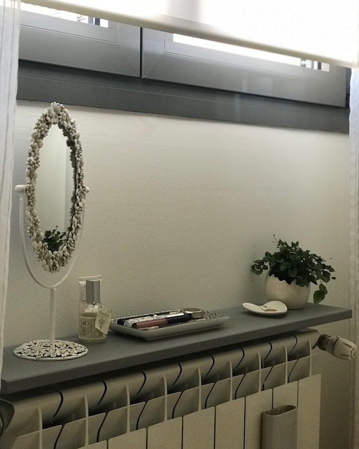 En este post de aquí podéis ver cómo era antes, el mobiliario básicamente sigue siendo el mismo salvo el zapatero que lo cambiamos introduciendo un armario de puertas correderas (el ikea hack os lo dejé aquí) Como mobiliario nuevo, he introducido un pequeño tocador sobre el radiador de la ventana, me siento en mi cama y me pongo o quito los potingues tranquilamente ya que en casa sólo disponemos de un cuarto de baño.
