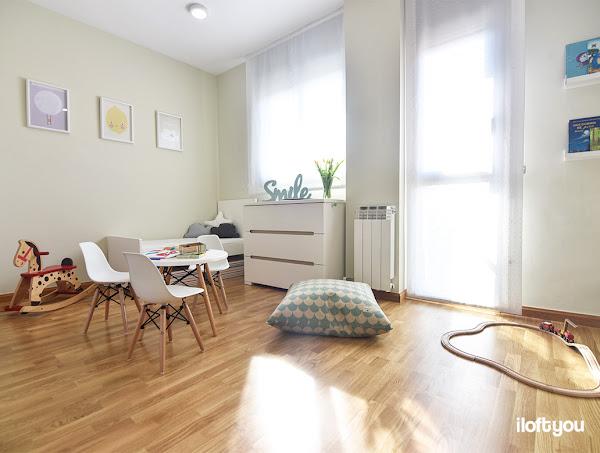 Y todo esto, seleccionando un mobiliario low cost total, así que no me dirás que esta habitación no es perfecta para permitir el descanso y el juego de estos tres hermanos. El resultado final, no me ha podido gustar más, y es que las zonas amplias y donde los niños lo tienen todo a mano me encantan.