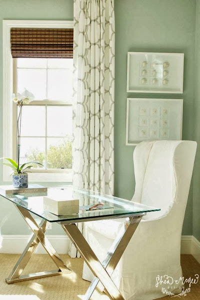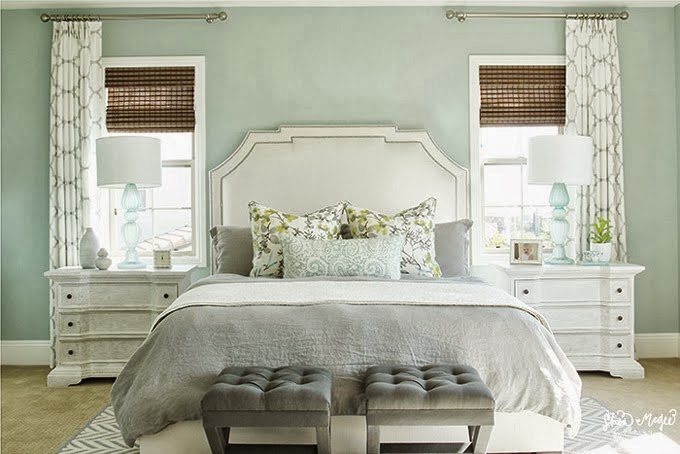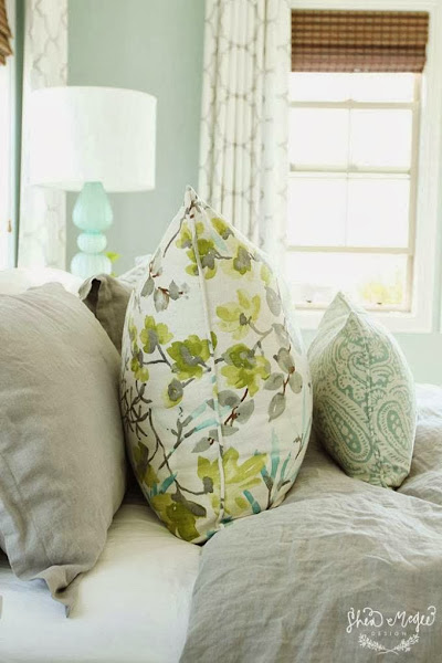 Los lunes se nos pegan las sábanas a todos pero si yo tuviera un dormitorio como éste no serían solo los lunes ... !se me pegarían todos los días! Porque desprende tanta serenidad, tiene una paleta de colores tan delicados, que invita a quedarse en la cama para siempre. Un diseño de Shea McGee Design inspirado en la naturaleza que crea una atmósfera ligera y fresca. Naturaleza que se refleja en las macetas y en los cojines con estampado floral. La simetría de su mobiliario, mesitas y pufs iguales, las cortinas, las ventanas ... invitan a disfrutar de un dormitorio ordenado y elegante que desprende bienestar por todos sus poros.