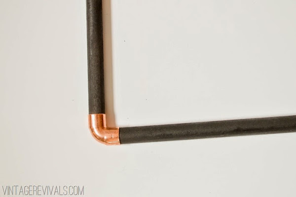 Para realizar esta original y práctica iluminación de pared se reciclaron unas viejas lámparas de pie y sobremesa, palos de madera, pintura negra, juntas y tapones de cobre tipo fontanería. Si te gusta y quieres hacer una igual para tu dormitorio, no tienes mas que seguir las instrucciones de la imágenes.