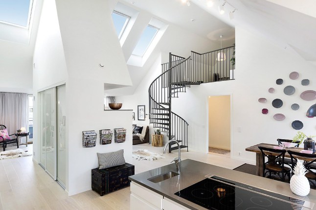 DECORACIÓN NÓRDICA + TECHOS ABUHARDILLADOS Empezamos el domingo con un dúplex de estilo nórdico muy luminoso, situado en el centro de Estocolmo. Tiene unos 146 metros cuadrados distribuidos en dos plantas unidas por una elegante escalera. En la planta de arriba, donde los techos inclinados le dan mucho encanto al espacio, encontramos un montón de detalles y buenas idea, como la cocina abierta o la ...