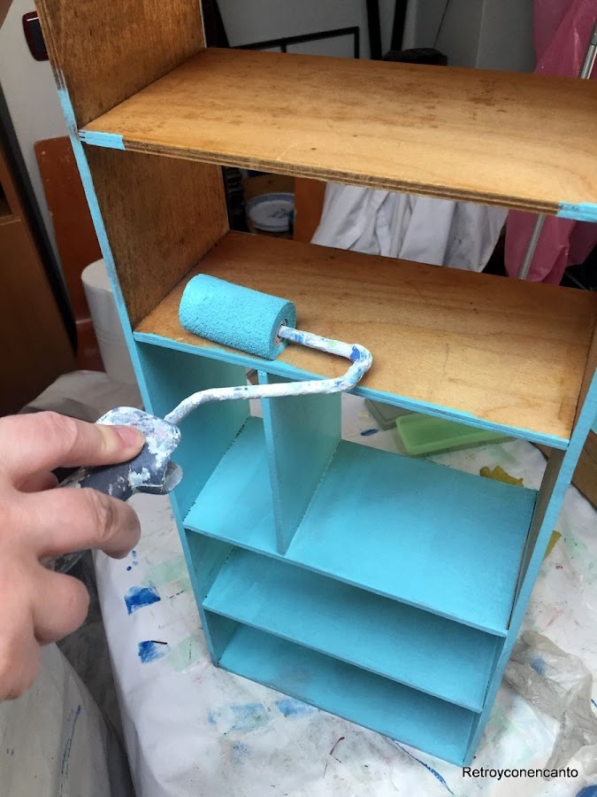 ..., pues nos permitió pintar la trasera completa, de una vez, y un compartimento interior del mueble, fuera del mismo; habría sido más complicado con el mueble montado.