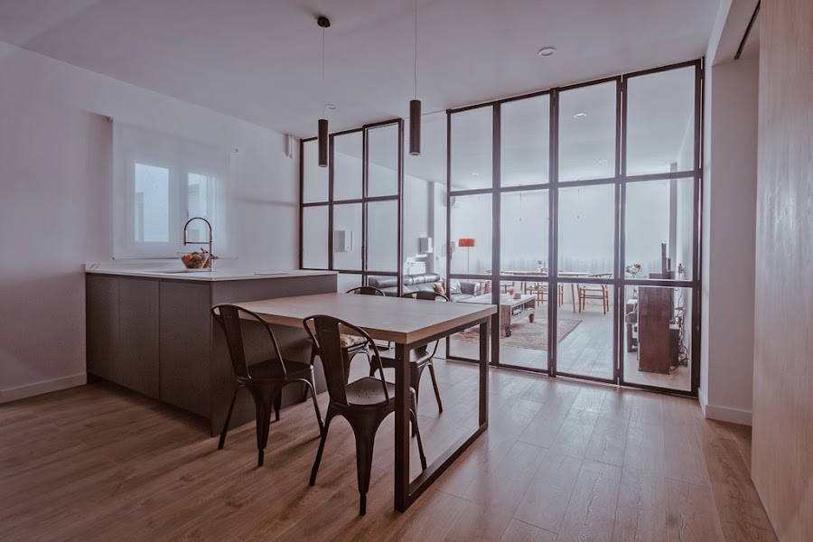 Un cambio drástico en una vivienda como ésta, pasa inevitablemente por modificar la zona de la cocina, salón y comedor para convertirla en un área social común, pero que, sin embargo, pueda mantener su independencia en determinados momentos.