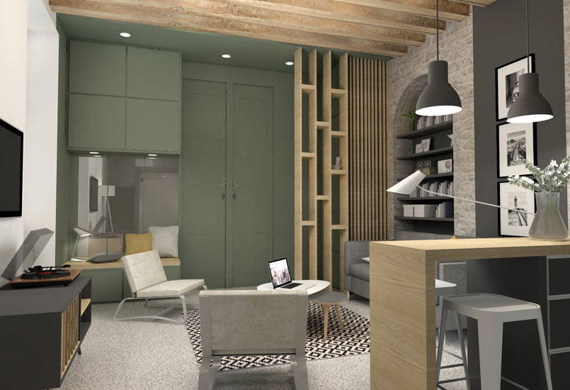 En este espacio podemos "diferenciar" los ambientes con una estantería, cortina, alfombra