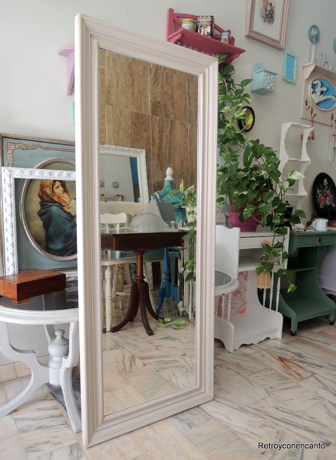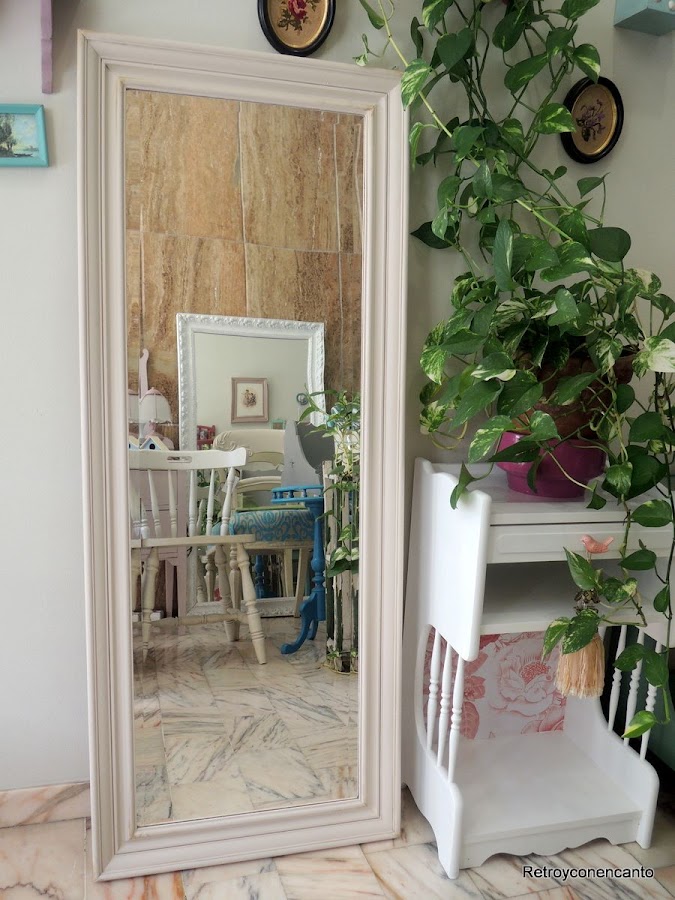 Con el color beige hemos conseguido actualizar un espejo de corte clásico, perteneciente a la abuela de esta chica...,