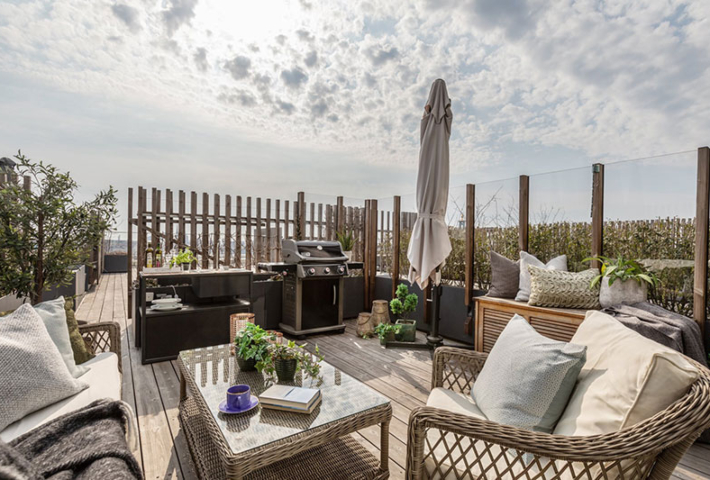 Pero por supuesto no podemos dejar de mirar la terraza. Un lugar fantástico para disfrutar de los luminosos días de primavera y de sus agradables noches.