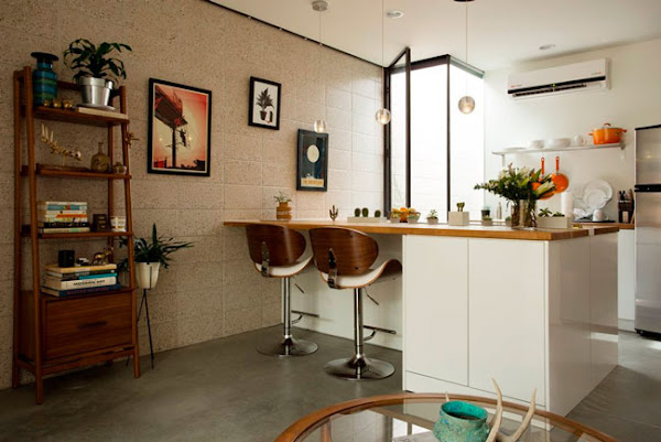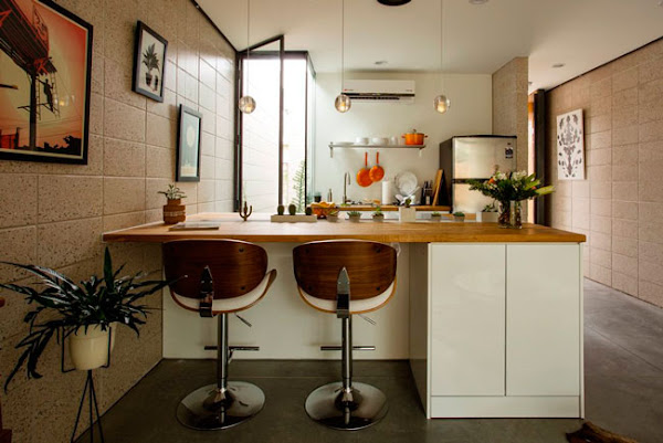 Normalmente subo estudios con diseño nórdico, porque encuentro muchos con buenas inspiraciones. Sin embargo, este pequeño estudio diseñado por Benjamin Hall, con estilo moderno y líneas rectas, me ha conquistado con sus detalles. Quién dice que no se puede poner una isla en un estudio?? No sólo queda perfecta, sino que se convierte en la pieza central en torno la que gira el resto del espacio. De un lado, da servicio a la cocina, y del otro, sirve como mesa para comer, trabajar, recibir... Etc. Además, en el centro incorpora una pequeña transición donde se esconden enchufes y otros detalles que siempre necesitamos tener cerca.