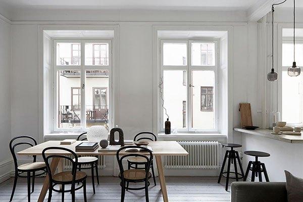 Como adoro esos pisos de ciudad situados en inmuebles antiguos, llenos de techos altos, ventanas generosas, molduras y tarima de madera (con cierta solera, diría yo) por no hablar de esos radiadores, fuertes, contundentes que cumplen a la perfección con su función de calentar, y por que no de dar cierta personalidad a la estancia.