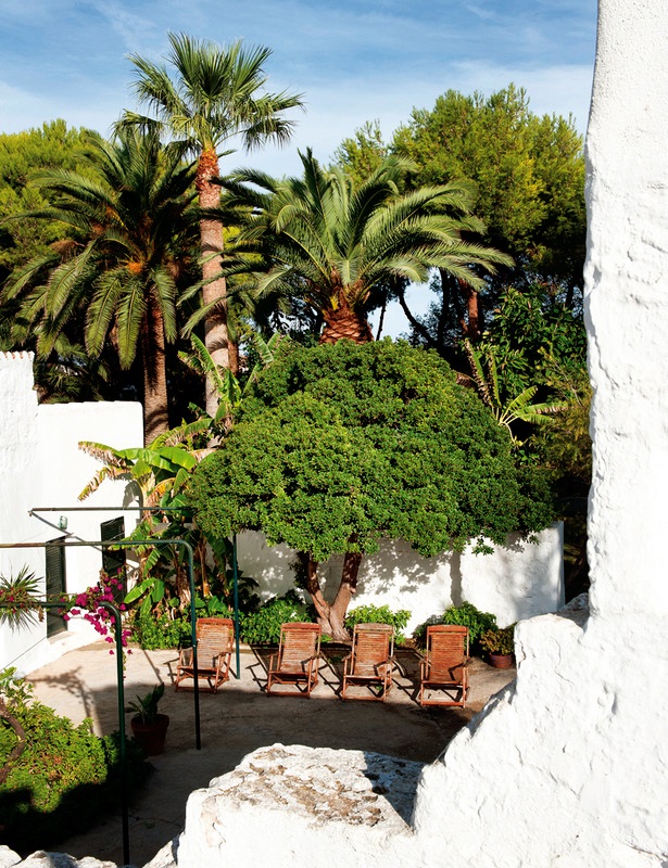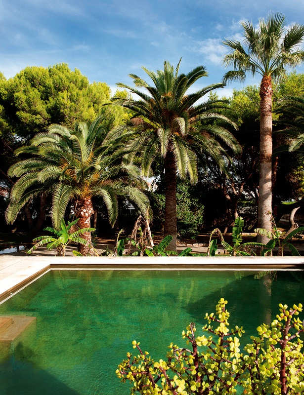Hace ya unos días que vi estas imágenes de este jardín en Menorca, una mezcla fantástica de estilo mediterráneo, marroquí y exótico. Estupendo tiene que ser el descanso bajo las ramas de este manzano. La exuberante vegetación rodea la piscina, la terraza, como casi toda la casa.
