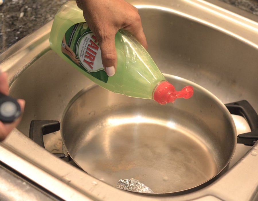Cuando ya ves que la mancha ha desaparecido, termina de lavarla con el jabón para platos que sueles usar.