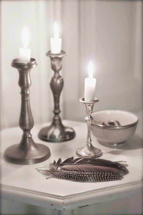 Cuidando hasta el más mínimo de los detalles, las velas como no,blancas y esos bellìsimos candelabros