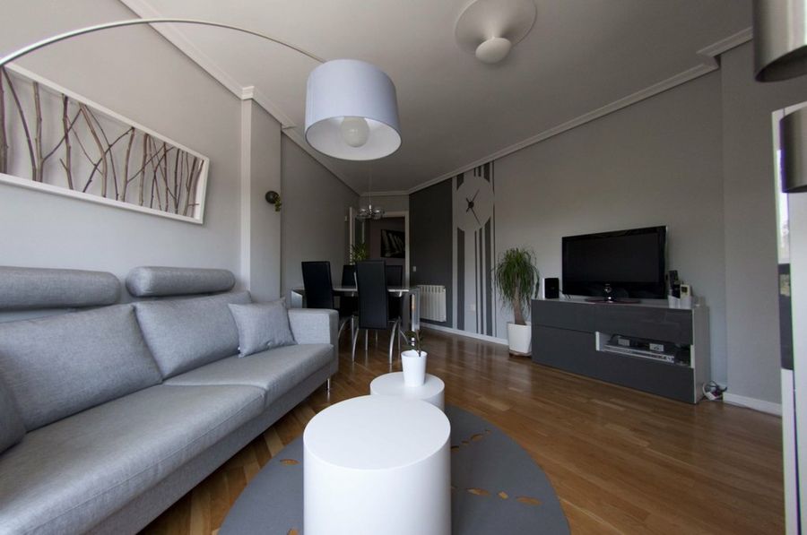 El salón tal y como comenta Duna es una de las estancias más personales, puesto que ha realizado ella misma la alfombra o el cuadro de encima del sofá. Al igual que en el resto de la casa los tonos blancos y grises son protagonistas de la decoración. En el aparador hay detalles de otros estilos como el oriental.