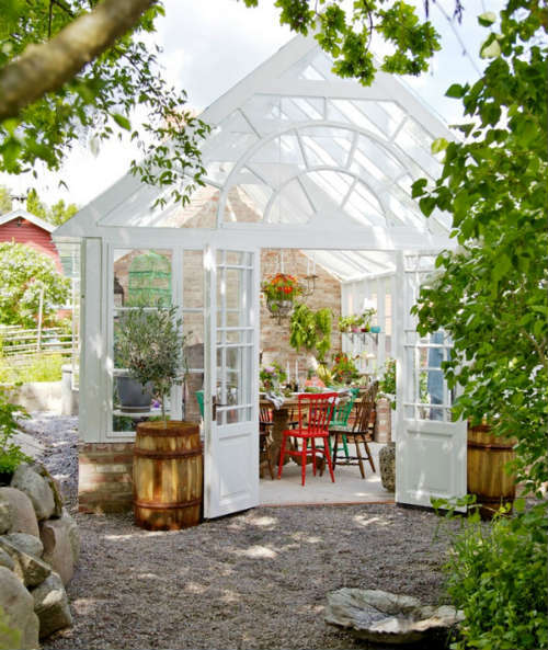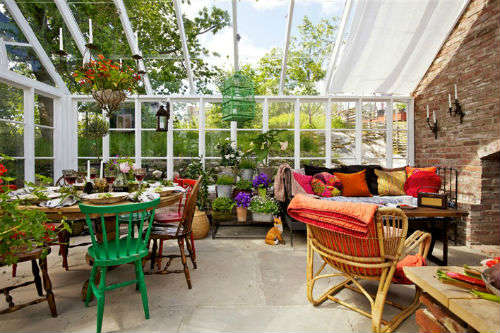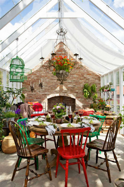 Cuando pensamos en un invernadero, nos viene a la mente una pequeña construcción donde dar rienda suelta a nuestra vertiente jardinera y poco más. Pero para que veais que no sólo sirve para tener nuestras plantas y flores a la misma temperatura todo el año, sin sufrir cambios bruscos, os he traido un invernadero que además de cumplir con su función específica, es una completa zona para reunir a la familia en un ambiente de lo más hogareño.