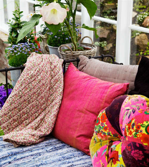 Es un espacio pintoresco en el que la luz entra por todos los ángulos. Además, muy fresco para días calurosos porque las plantas ayudan a rebajar la temperatura exterior. Me encanta la pared rústica y los diferentes zonas que han creado: para comer, para descansar, para tertuliar en un ambiente relajado. Pero a pesar de que está concebido para disfrutar, no le falta un rincón donde guardar los enseres de jardinería. Lo tiene todo !!