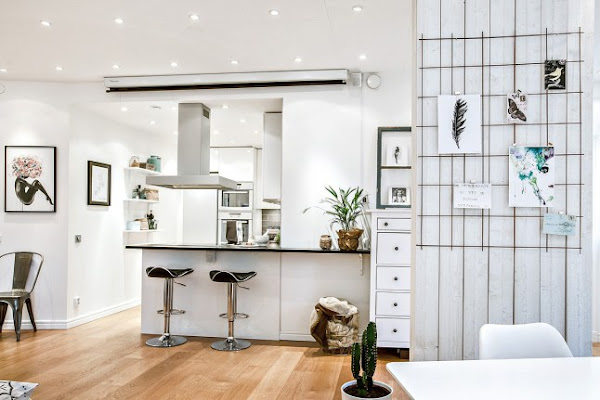 Buenos días, Empezamos la semana con un piso lleno de inspiración deco que, a parte de tener un estilo nórdico que nos encanta, es un claro ejemplo de cómo combinar la ya más que socorrida pareja cromática BLANCO Y NEGRO, integrando también el mobiliario de madera natural (como es el caso del comedor-salón), y otros elementos decorativos en colores diversos. Además está lleno de ideas de almacenaj ...