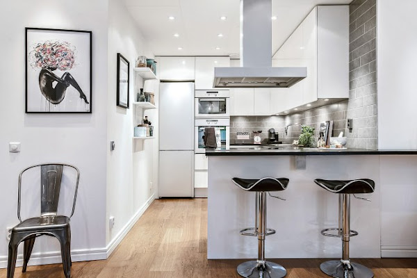 Decorar en blanco y negro. es siempre un boleto ganador, esta pareja 100% camaleónica se adapta fácilmente a cualquier estilo, así como a la mezcla de mobiliarios y colores, puedes poner en una misma estancia muebles de madera y de color que con una base así se integraran como un guante. Este piso me pareció una buena dosis de inspiración, ideas para poner a punto nuestras casas sin arriesgar mas ...