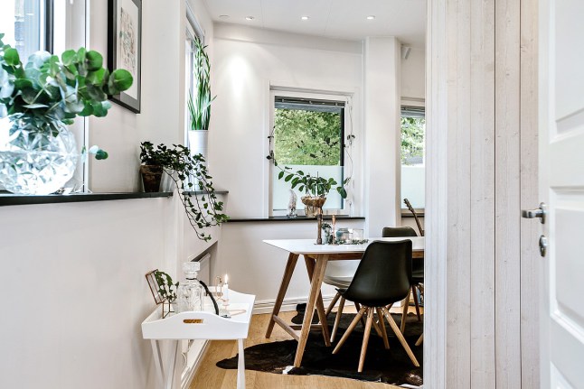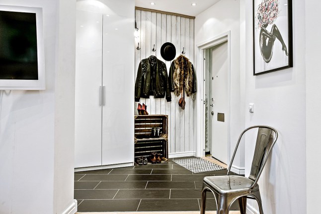 El binomio blanco/negro es uno de los más usados en el estilo nórdico y es el protagonista de este apartamento, no sólo se ha escogido en textiles o piezas decorativas, ya que en los revestimientos también están presentes estos colores, suelo de damero, el precioso revestimiento de mosaico de la entrada e incluso las juntas de los azulejos tipo "metro" de la cocina se han escogido en neg ...