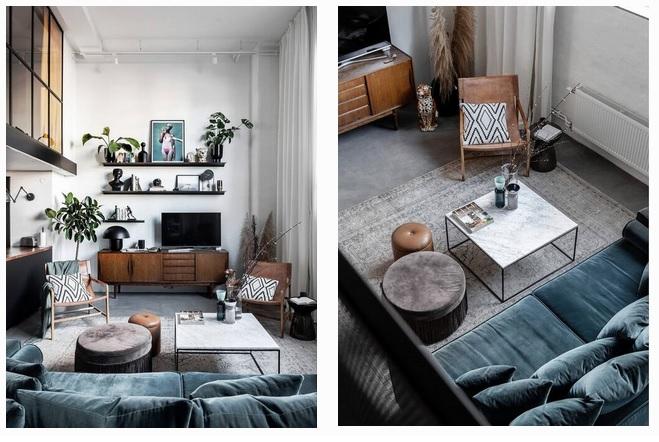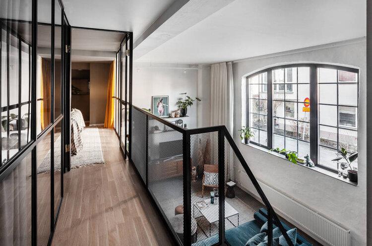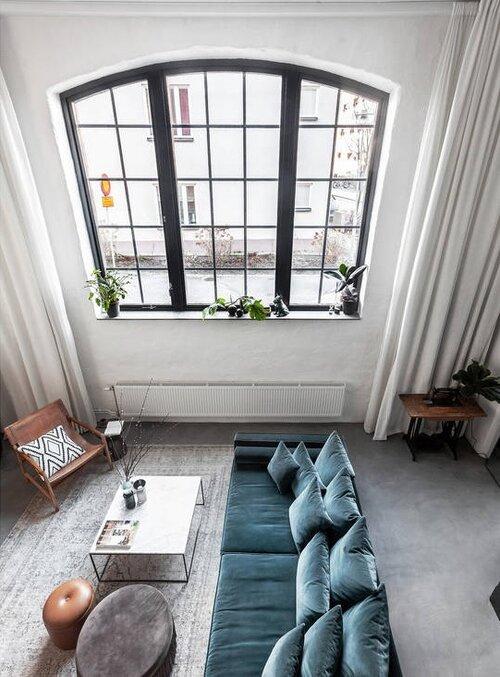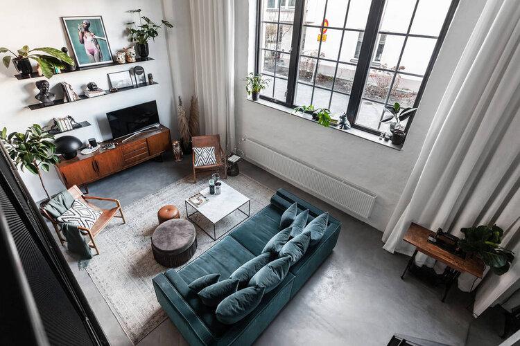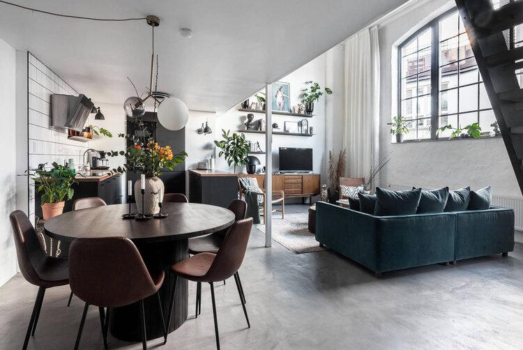 Este Loft de aires industriales y escandinavo. Esas son tres descripciones de diseño que son como música para mis oídos. Esta casa a las afueras de Estocolmo es perfecta si te gusta un aspecto moderno e industrial con un toque de diseño Scandinavo. Un salón-comedor con cocina integrada, presenta una bonita doble altura, decorado con un aspecto cálido gracias a sus tonalidades, con toques de madera en muchas de sus piezas y un maravilloso sofá de terciopelo azulverdoso que me Chifla!!! Otro de los puntos a destacar son la cantidad de obras de arte que se presentan dando vueltas para romper el blanco de las paredes. Inspírate!!!!