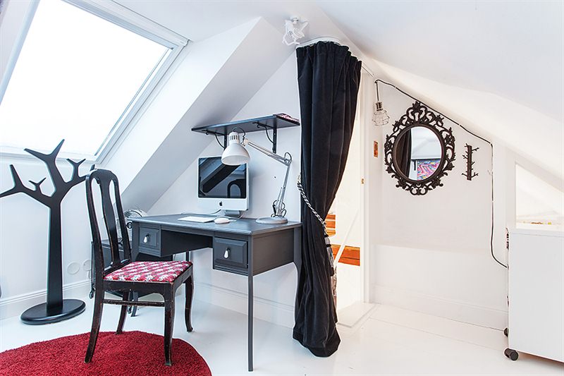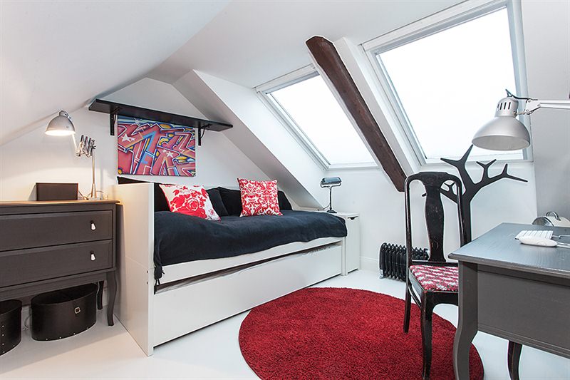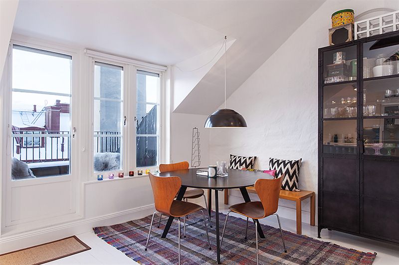 Se trata de un espacioso loft en Estocolmo y tiene en común con el apartamento de ayer que también se encuentra en una buhardilla.