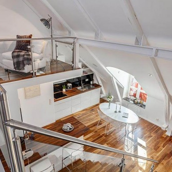 Luz + luz + luz... diseño nórdico! Otra vez en Estocolmo, pero en esta ocasión para visitar un apartamento al más puro estilo nórdico. Luz, luz y más luz, que se refleja en techos, paredes y mobiliario. Madera en suelos y encimeras y riqueza en los objetos que acompañan la decoración. Un precioso loft en dos plantas, completamente abierto y sin perder por ello ni una pizca de calidez. Espac ...