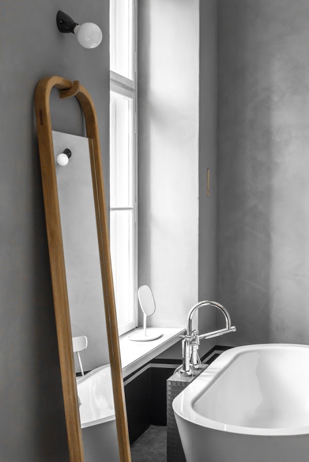 Cada uno de los espacios de esta casa tiene una fuerza indiscutible. Los materiales tienen mucha presencia. El hormigón y la madera son la clave de este proyecto y de no ser por esto y la singularidad y el carácter de cada pieza de mobiliario e iluminación, las habitaciones serían congeladores gigantes. El peso empieza en el suelo y llega hasta más o menos nuestro punto de vista, desde la línea de horizonte hacia arriba hay silencio, paz. Una vivienda dividida en su verticalidad, de mente fría.