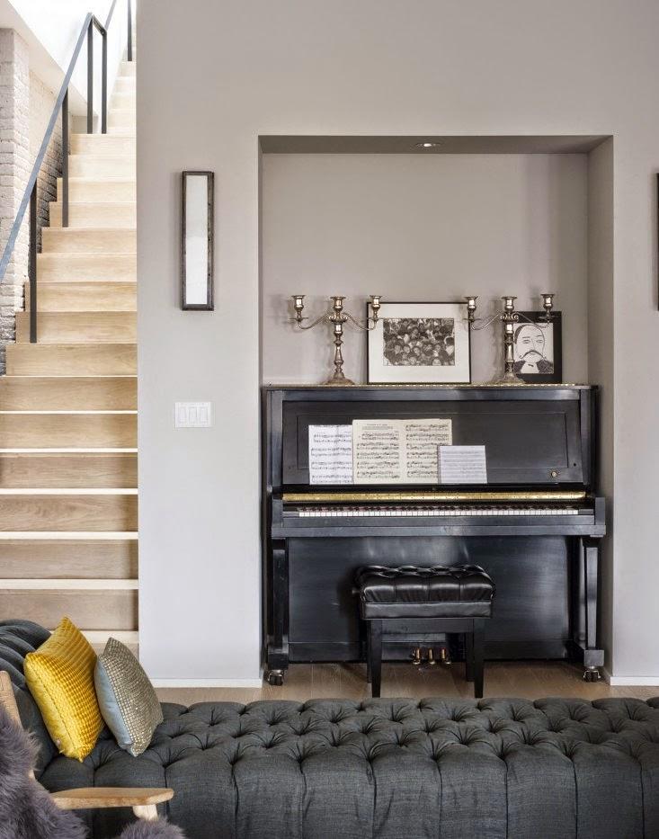 Tiene toques de auténtico desenfado, con ese ladrillo blanco en las paredes, y de absoluta elegancia, con una cocina sobria y enorme, o el espacio donde se aloja el piano... Al mismo tiempo, el gusto por revestir completamente paredes con papel o madera, aporta el punto extra de originalidad, y para finalizar... Nos quedamos con ese aprovechamiento diez del hueco sobrante debajo de la escalera y los techos de hasta 13 m de altura...