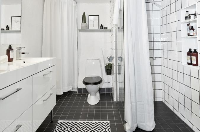 Por último el baño, un práctico y moderno espacio que para no romper con la estética, sigue fiel al esquema de color en blanco y negro imperante en toda la casa.