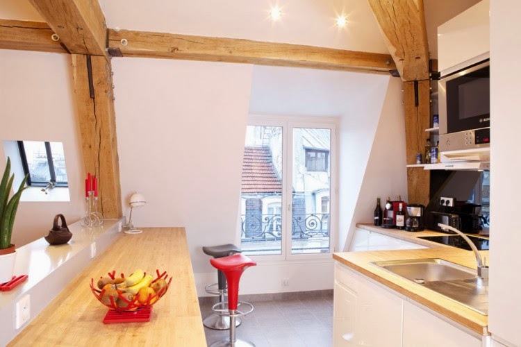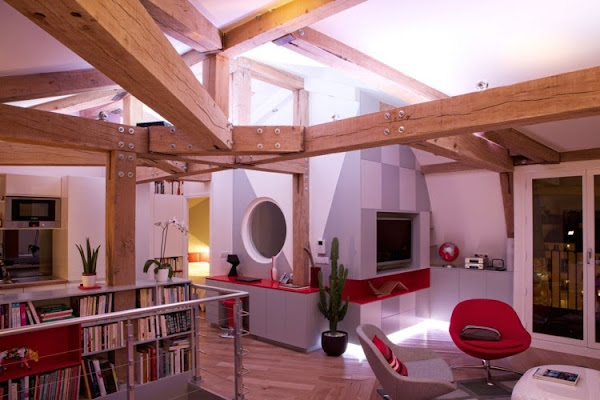 Al reformar este loft, que fue dañado por un incendio en París, querían algo nuevo, ambicioso y creativo. Aprovechando y sacando partido a cada milímetro, consiguiendo así una gran luminosidad y una buenisima distribución a la vez que destacan la sencillez y la ligereza.