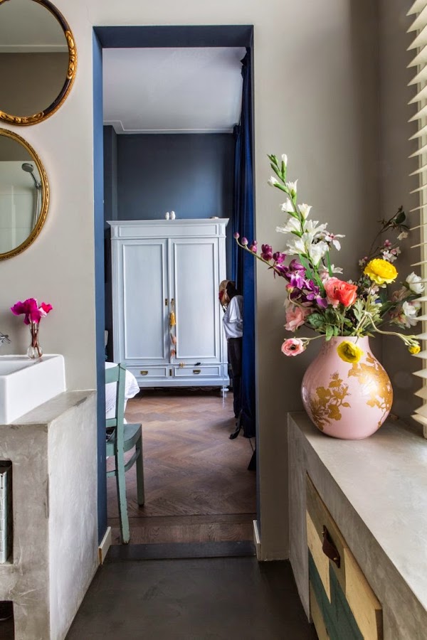 Pues sí, has leído bien. Esta casa fue anteriormente un gimnasio en el centro de Haarlem (Holanda), y cuando cerró, esta familia aprovechó para adquirirlo y transformarlo en un elegante hogar, lleno de detalles que mezclan las piezas de diseño con otras antiguas y recicladas. ¿Sus mayores aciertos? La mesa del comedor, rodeada de sillas de diferentes estilos y colores, el centro de mesa, creado a partir de diferentes jarrones pequeños, y el paso del baño a la habitación principal, con el juego de espejos y el jarrón rosa y dorado dando la bienvenida al lugar de descanso...