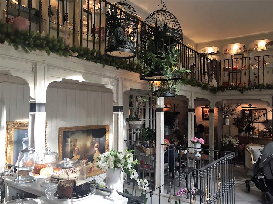 Unos enormes ventanales y su puerta rosa, hacen que pasar por delante y no tener la tentación de entrar sea imposible.Y cuando entras...de repente dejas de estar en Madrid, para transportarte a un lugar mágico y tranquilo, el olor a flores frescas y su cuidada decoración de aire ingles te envuelve y poder disfrutar de un te y un pedacito de tarta casera es todo un placer.
