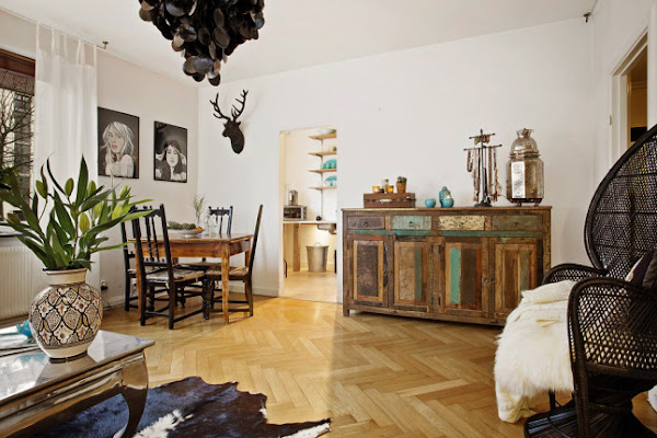 Poco a poco, el estilo nórdico se va introduciendo en nuestro país, pero como siempre, este estilo va cogiendo mutaciones de otras culturas y el piso de hoy es un claro ejemplo.
