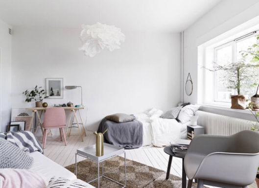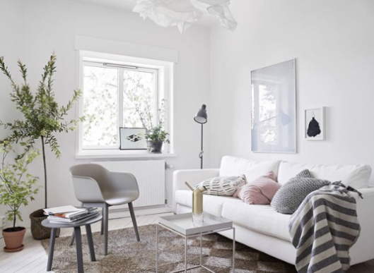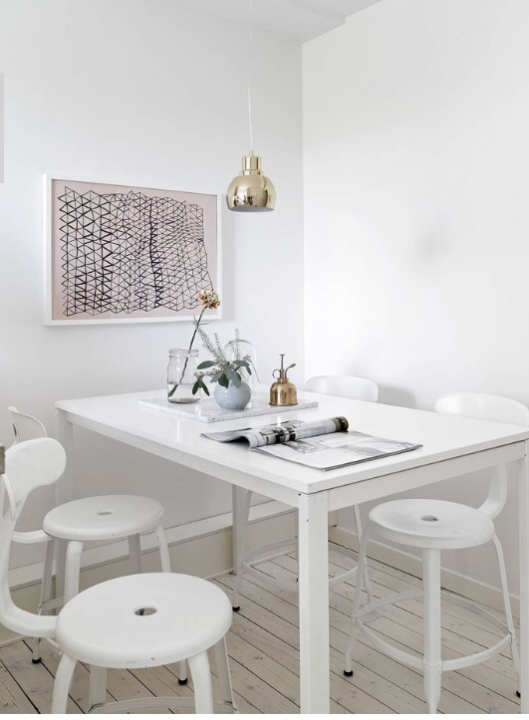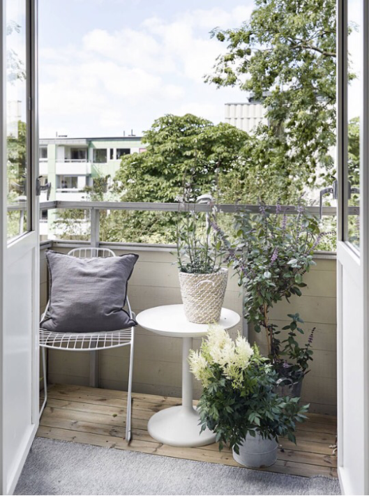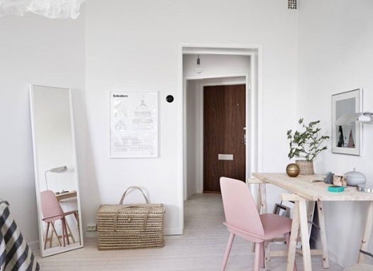 El suelo de madera en el balcón me parece una súper idea que igual aplico a mis balcones (con suelo vinilico que me sobró de cuando lo puse en toda la casa) por lo demás me parece un piso súper femenino y lleno de paz. Si tuviese que ponerle algún pero, sería ¡la falta de libros! Pero suele pasar en las viviendas nórdicas, ¡¡¡será que todos leen con el libro electrónico!!! Yo aún soy una romántica que le gusta el olor de los libros y tener la casa ¡invadida por ellos!