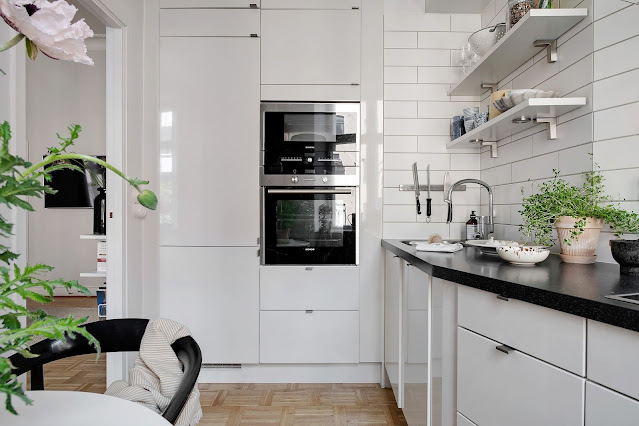 El minipiso de hoy destaca por su sencillez, con suelos de madera clara y paredes blancas, combinado todo ello con muebles lacados en blanco, complementos en negro y plantas verdes colocadas estratégicamente aportando toques de color. 48 m2 diáfanos pero con todos sus espacios definidos a la perfección. Espero que os guste. Que tengáis un buen dia! Fuente fotos: Styleofdesing
