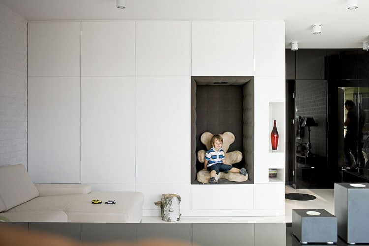Habéis visto el asiento empotrado en la pared con un cojín en forma oso para el pequeño de la casa? Es una pasada!!