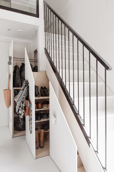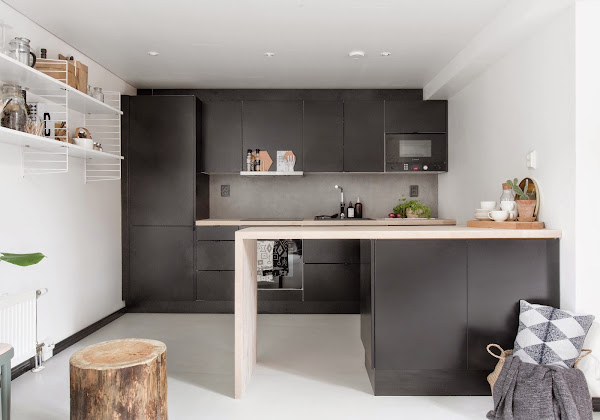 También me gusta mucho la naturalidad con la que el salón y la cocina están unidos. No se rompe para nada la continuidad de la decoración, cosa que si ocurre en muchas ocasiones. Y por ultimo me gustan mucho las soluciones de almacenaje que tiene. Esos armarios extraíbles de debajo de la escalera son lo mas y el armario del dormitorio seguro que es el sueño de muchas de vosotras que estáis leyendo esto. Ahh bueno, y una cosa más, tienen el mueble metálico Ikea PS que tanto me gusta, así que como no me va a encantar este loft.