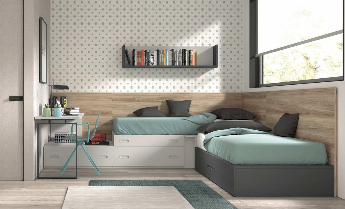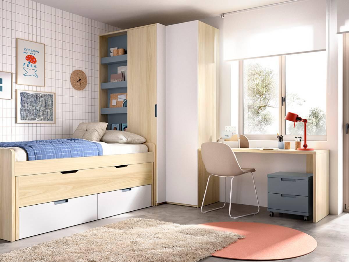 Camas Compactas Modulares: Ofrecen una solución todo en uno, con almacenamiento, espacio de trabajo y área de descanso integrados. Estas camas pueden personalizarse según las necesidades y gustos del adolescente, ayudándoles a mantener el orden y la organización.