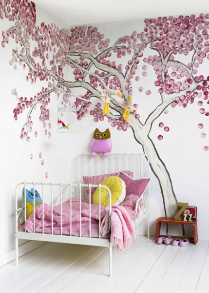 Simplemente pintando un arbol en la pared del cabecero, se ha conseguido aportar calidez, originalidad, y simpicidad ...a un dormitorio infantil..............