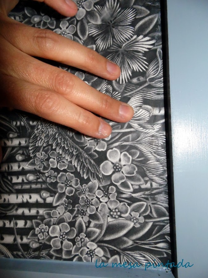 para proteger la zona empapelada le apliqué dos capas de barniz incoloro