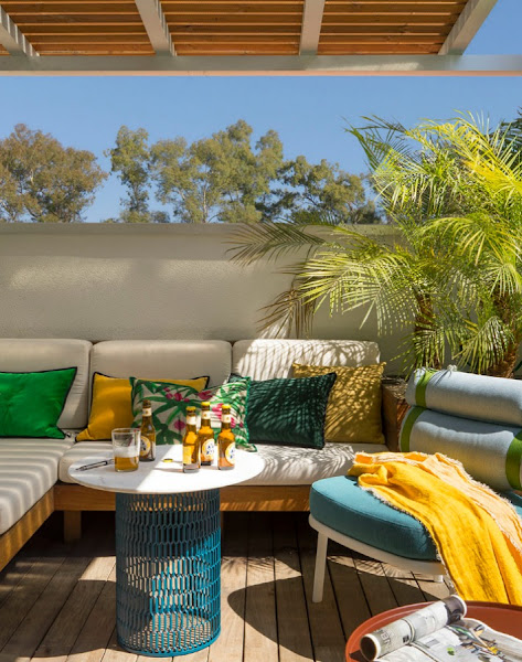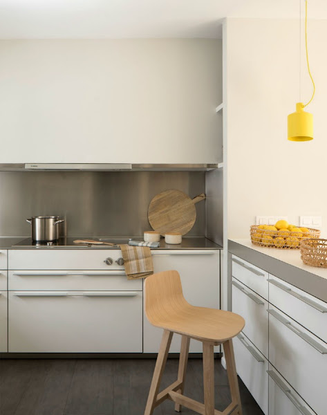 La base de la vivienda es pura, neutra y atemporal. Añadiendo la calidez que aportan los materiales naturales y toques de colores controlados. Si os fijáis uno de esos colores es el amarillo minion que tan de moda estará en los próximos meses. Tal y cómo nos cuenta Maritxel Ribé: "Se juega con los colores verde agua, las tonalidades ocres y amarillas, maderas de roble, rafias, algodones y linos. Así como la combinación de diferentes pieza de diseño tanto en la iluminación, mobiliario, obras de arte y complementos para darle un toque moderno pero a la vez cálido y elegante. Consiguiendo así una atmósfera natura y equilibrada"