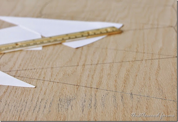 Tomaremos la medida de los triángulos formados entre los radios de la bicicleta y cortaremos siete medidas iguales en madera de balsa. Ten en cuenta al medir que los triángulos de madera apoyaran encima de los radios.
