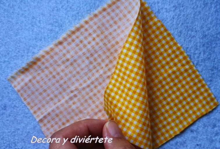 Busque un trozo de tela que me había sobrado de las mariposas y un pequeño recipiente de plástico que tenía por casa ,yo lo guardo todo por si acaso .
