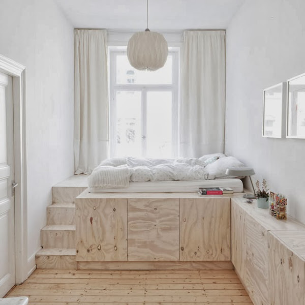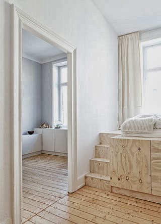 Cuando el espacio no abunda hay que recurrir a los colores claros, que aporten luminosidad, que mejor ejemplo que el blanco, toma también gran importancia el mobiliario a medida y al que se le pueden dar varios usos. Esta vivienda es un claro ejemplo de ello, decorada en blanco y con suelos y mobiliario en madera natural, que aporta calidez sin recargar el espacio, se ha logrado dar amplitud y dotar de todo el encanto del diseño escandinavo que tanto gusta a sus propietarios.
