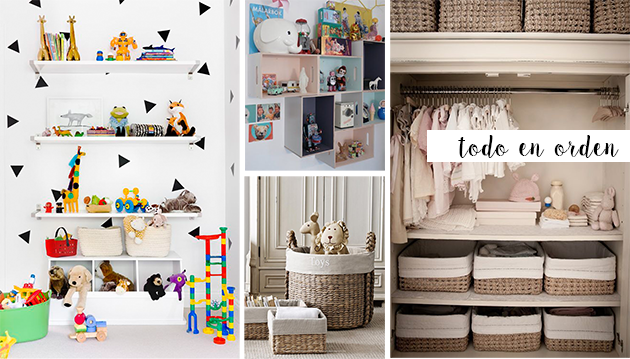 Y para terminar, os dejo mi ultima idea de "ordenar con estilo" ya bien sea para sus juguetes como para su ropa. Me encanta el rincón de baldas con los triangulos negros y todos los juguetes ahí puestos.
